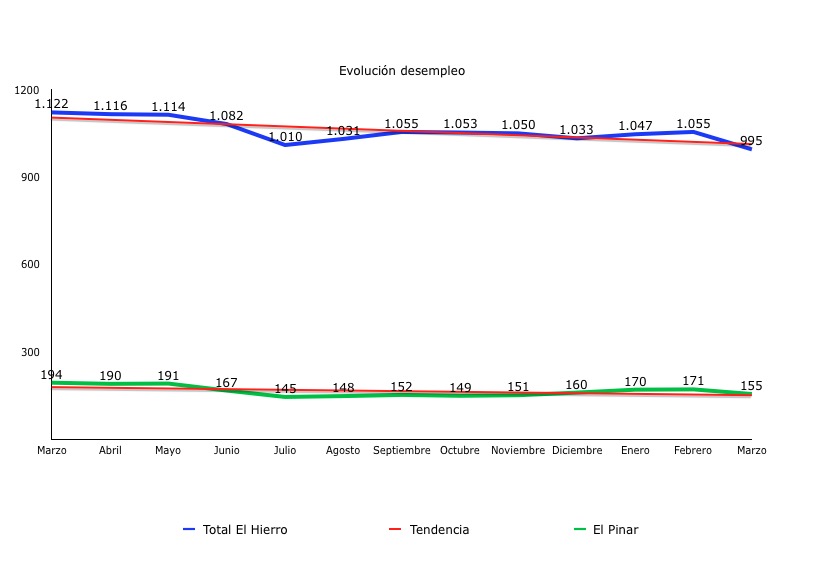 Redacción/El municipio de El Pinar registró un descenso del 20 por ciento del número de parados en el último año, hasta registrar un total de 155 personas desempleadas a finales del mes de marzo frente al mismo mes del año pasado, según los datos del Observatorio Canario de Empleo (Obecan).