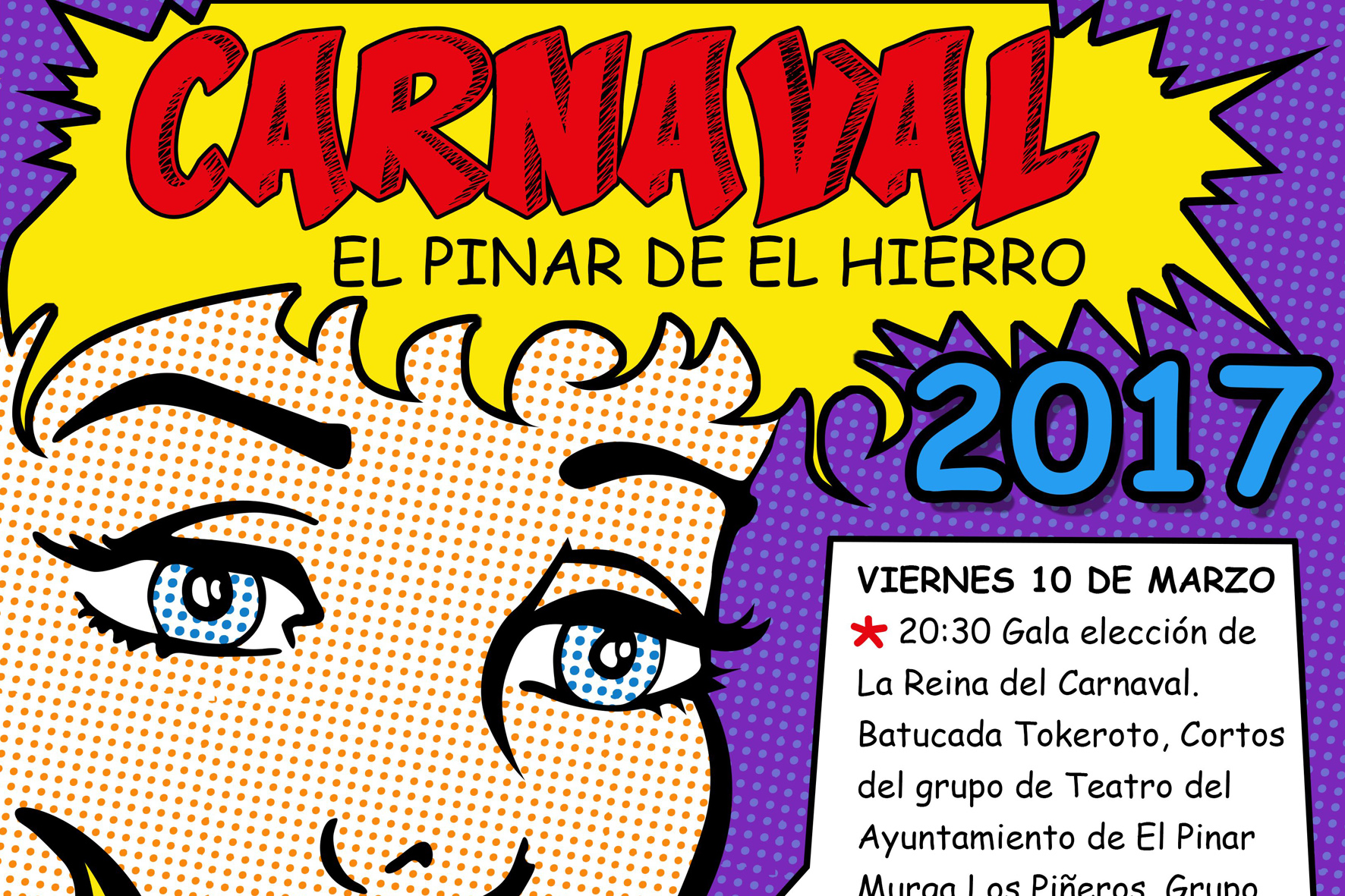 Redacción/El programa del carnaval, organizado por el Ayuntamiento de El Pinar, comenzará el próximo viernes, 10 de marzo, con la celebración de la Gala de Elección de la Reina, un certamen que comenzará a las 20:30 horas. Las fiestas se prolongarán durante todo el fin de semana en el municipio.