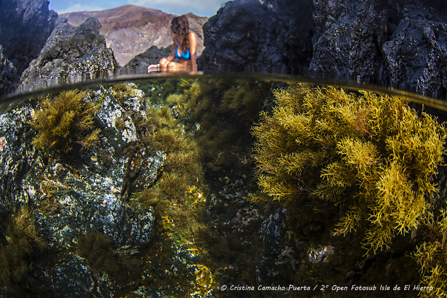 Redacción/Cristina Camacho Puerta, ganadora del premio otorgado por el jurado popular a la mejor fotografía del mes de septiembre, el premio del jurado popular a la mejor fotografía del mes de septiembre en el 2º Open Fotosub Online “El Hierro, un Puerto de Vida”, ha recaído sobre la fotógrafa Cristina Camacho Puerta. La imagen presentada dentro de la categoría “Algas”, nos muestra una imagen mitad dentro del agua con el fondo y paredes de la roca cubiertas de algas, y mitad fuera con una modelo descansando sobre las rocas. La fotografía fue realizada durante el mes de septiembre con el Centro de buceo El Bajón, colaborador oficial del Open Fotosub Online.