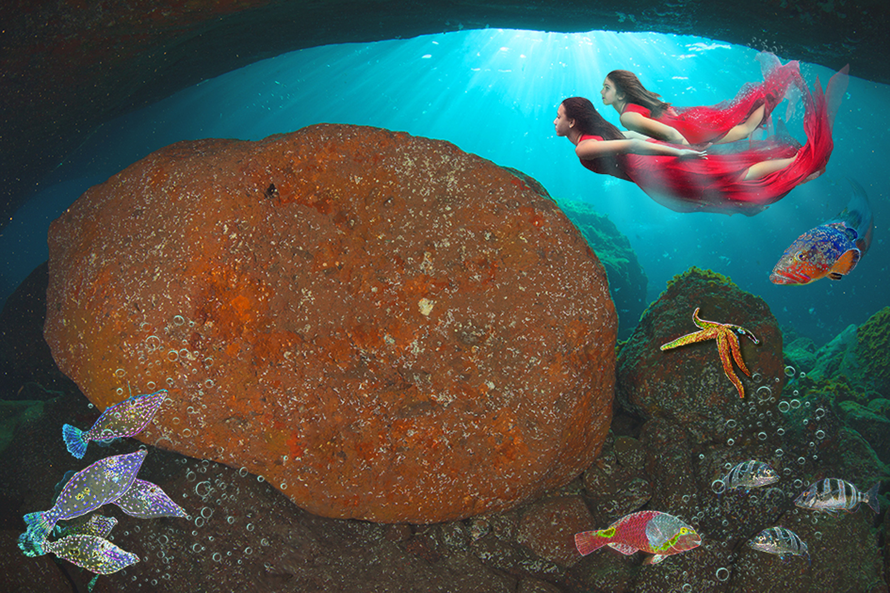 Este cuento está compuesto por cuatro partes. El trabajo de fotografía submarina en apnea ha sido realizado por dos fotógrafos de prestigio nacional como son el herreño Juan Ramón Marcelino y la canaria Cristina Camacho Puerta; la ilustración y diseño ha estado a cargo de Esther Terradas Carrandi, de la narración se ha encargado Anita Vidal Torregrosa y la idea original y coordinación del proyecto ha estado a cargo de Magaly Gonzalez, concejal de Turismo y Nuevas Tecnologías.