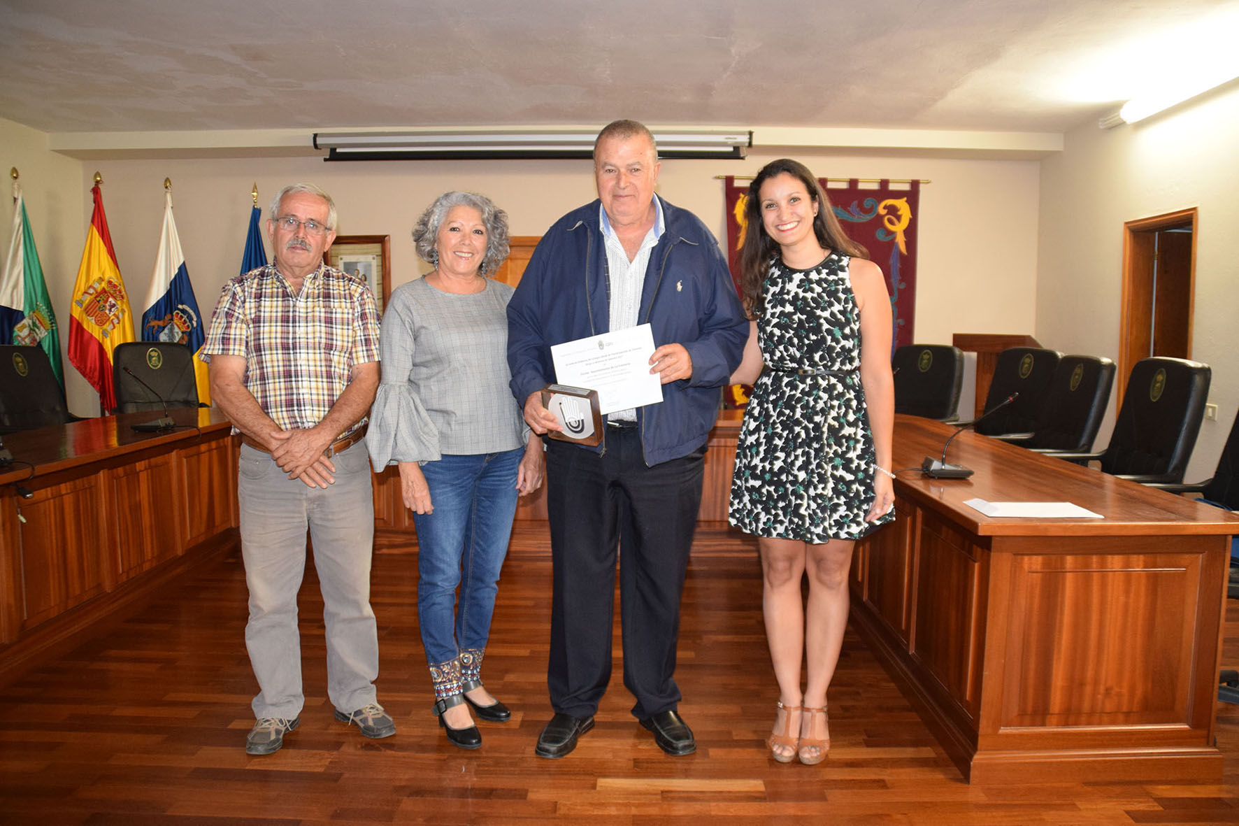 El acto de entrega de este galardón al municipio herreño tuvo lugar esta mañana en el salón de plenos del Ayuntamiento de La Frontera. Además de la distinción, entregada por la vicepresidenta de la organización colegial, Estefanía Plasencia, al alcalde de la corporación local, Pedro Miguel Ángel Acosta Padrón, este galardón conlleva una aportación económica de 1.000 euros que hace el Colegio de Fisioterapeutas a una ONG elegida por el Ayuntamiento, en este caso La Asociación de Personas con Discapacidad y de Familias El Sabinar, con el fin de iniciar algunos programas de fisioterapia entre sus usuarios.